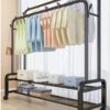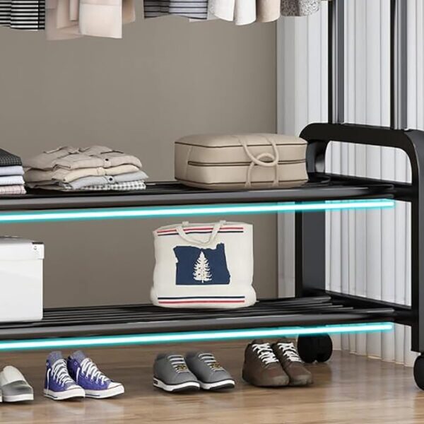 Ahorra espacio de almacenamiento, satisface las necesidades de varios lugares. Una simple combinación de doble riel para ropa y zapatero.