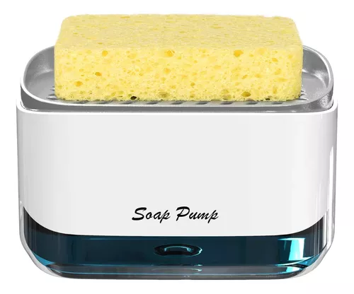 El Dispensador De Jabón Con Portaesponjas es un producto 2 en 1 que incorpora un dispensador de jabón, un soporte para bandejas y una esponja. Este diseño reduce el espacio que ocupan en su fregadero y es apto para todas las esponjas, estropajos, trapos, etc.