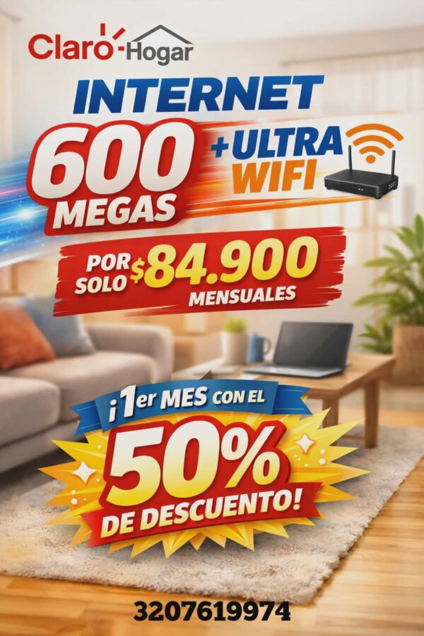 Internet de 600 megas + ultra wifi por solo $ 84.900 mensuales