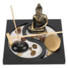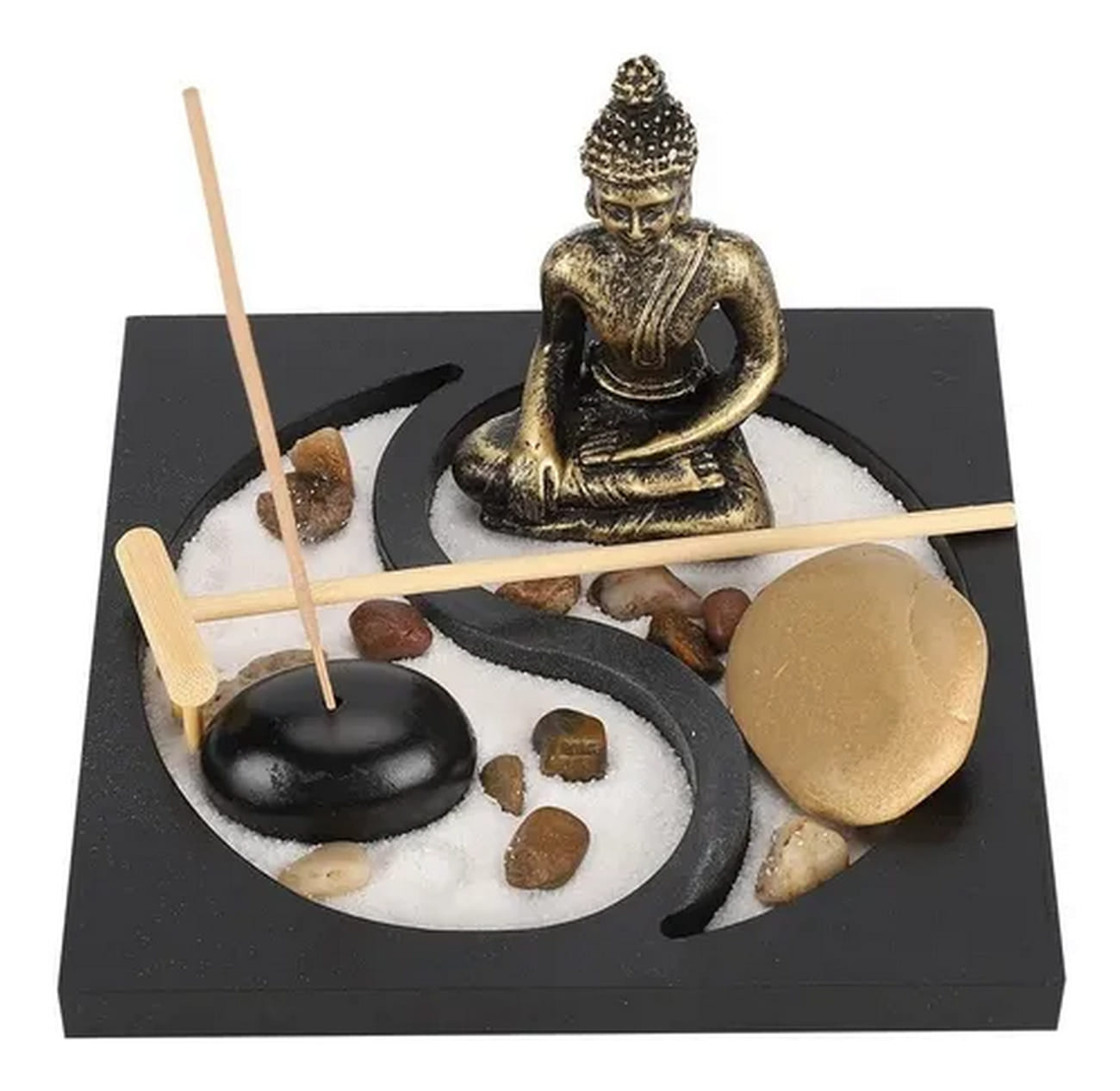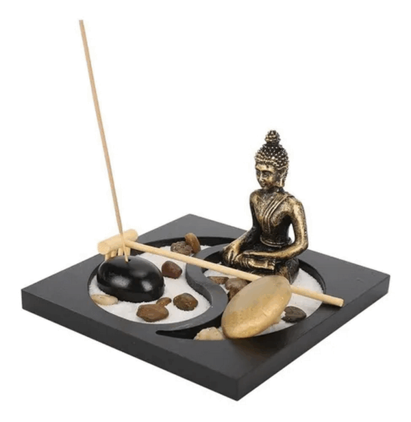Este incre ble jard n zen de yin yang quemador de incienso es una pieza que traer la paz y tranquilidad a tu vida oficina o hogar Es un s mbolo fundamentado en la dualidad del universo son las dos fuerzas existentes y complementarias que se encuentran en todas las cosas Si est s buscando perfeccionar tu lugar favorito de relajaci n este kit es ideal ponlo en tu mesa y has el ambiente perfecto para la meditaci n Es el regal perfecto para tu familia amigos compa eros de trabajo regala un art culo que llenara su vida de paz El producto incluye Base de Madera forma yin yang Bolsa de Rocas Roca Zen Quemador de incienso Bolsa de Arena Blanca Baritas de incienso 3 pcs Buda Sentado Dorado Vintage Rastrillo para ArenaFicha T cnica Ancho de la Base 14 6 cmProfundidad de la base 14 6 cmAltura de la base 1 cmMaterial de la base MaderaDimensiones del buda Alto x Ancho 8 6 cm x 5 cmMaterial del buda Poli resina Para defectos de f brica o retractos Por favor revise el producto apenas lo reciba y antes de usarlo No aplican ley de retracto o defectos de f brica luego de usar el producto Se manejan m ximo 5 d as para reportar defectos de f brica por ejemplo producto funciona mal piezas faltantes rotas etc Para hacer efectiva la devoluci n el producto debe devolverse con el empaque original el cual debe estar en buen estado incluir todos los documentos y las partes completas y sin da os Los cuidados y recomendaciones para mantener un producto en buen estado son los siguientes No aplicarle perfumes ni cremas directamente no mojarlos no dejarlos caer y procurar limpiarlos para retirar suciedad Precauciones No dejar nunca una vela encendida sin vigilancia y mantener fuera del alcance de los ni os