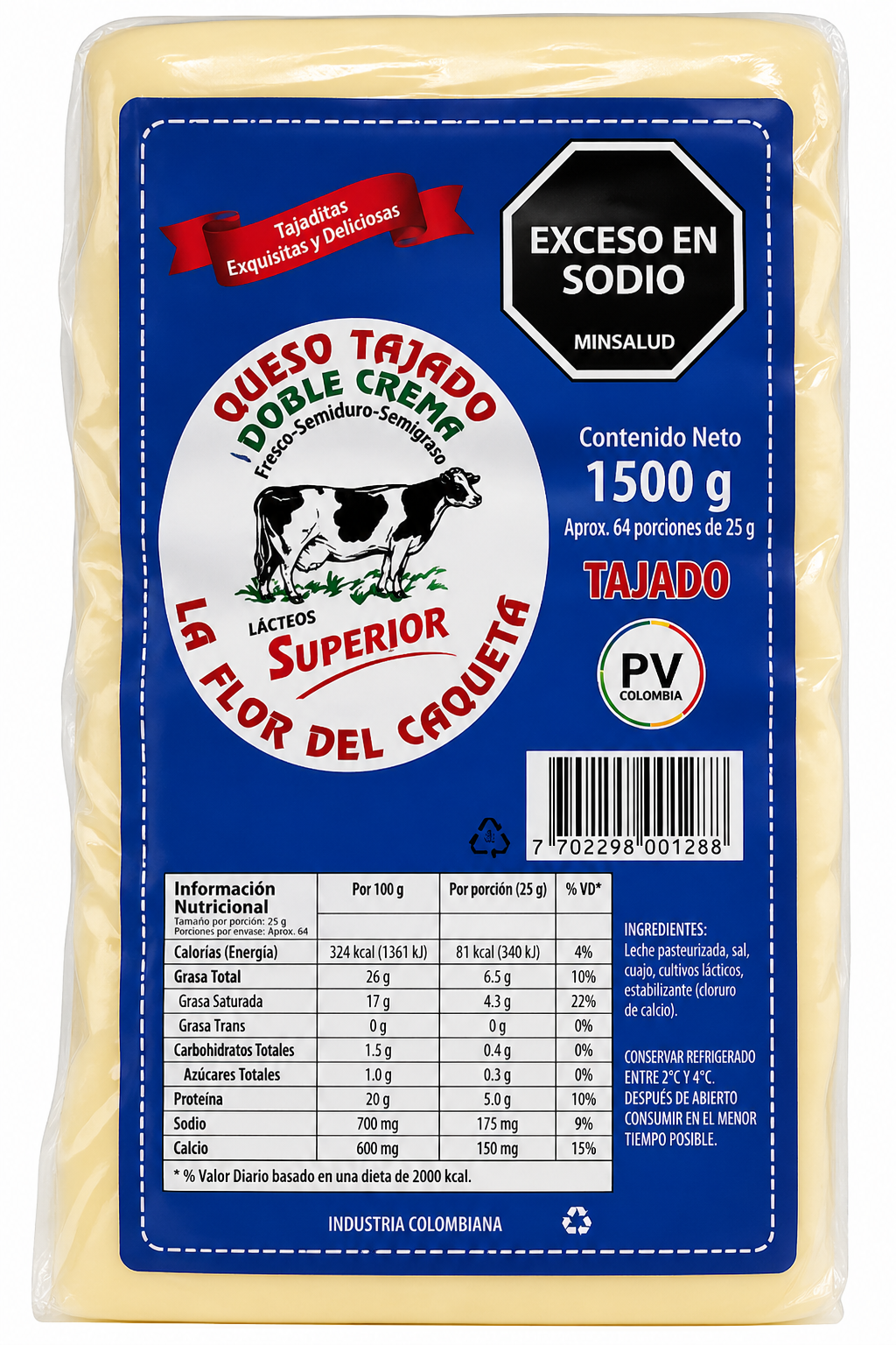 QUESO DOBLE CREMA SUPERIOR TAJADO 1500 g